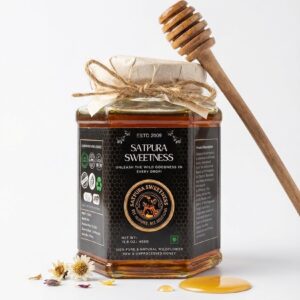 Our raw honey is sourced from wildflowers of the Satpura range, Pachmarhi, and extracted using traditional cold-extraction methods.