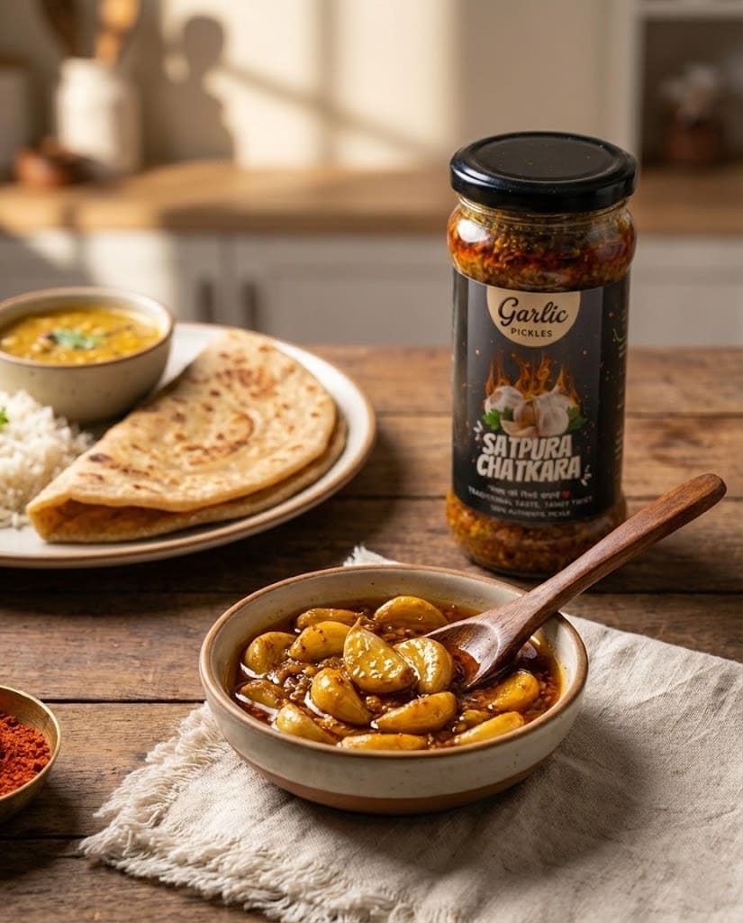 Made from fresh garlic cloves and slow-mixed spices, our Organic Garlic Pickle delivers strong flavor with health benefits. This lehsun ka achar is naturally fermented, chemical-free, and crafted for everyday Indian meals.