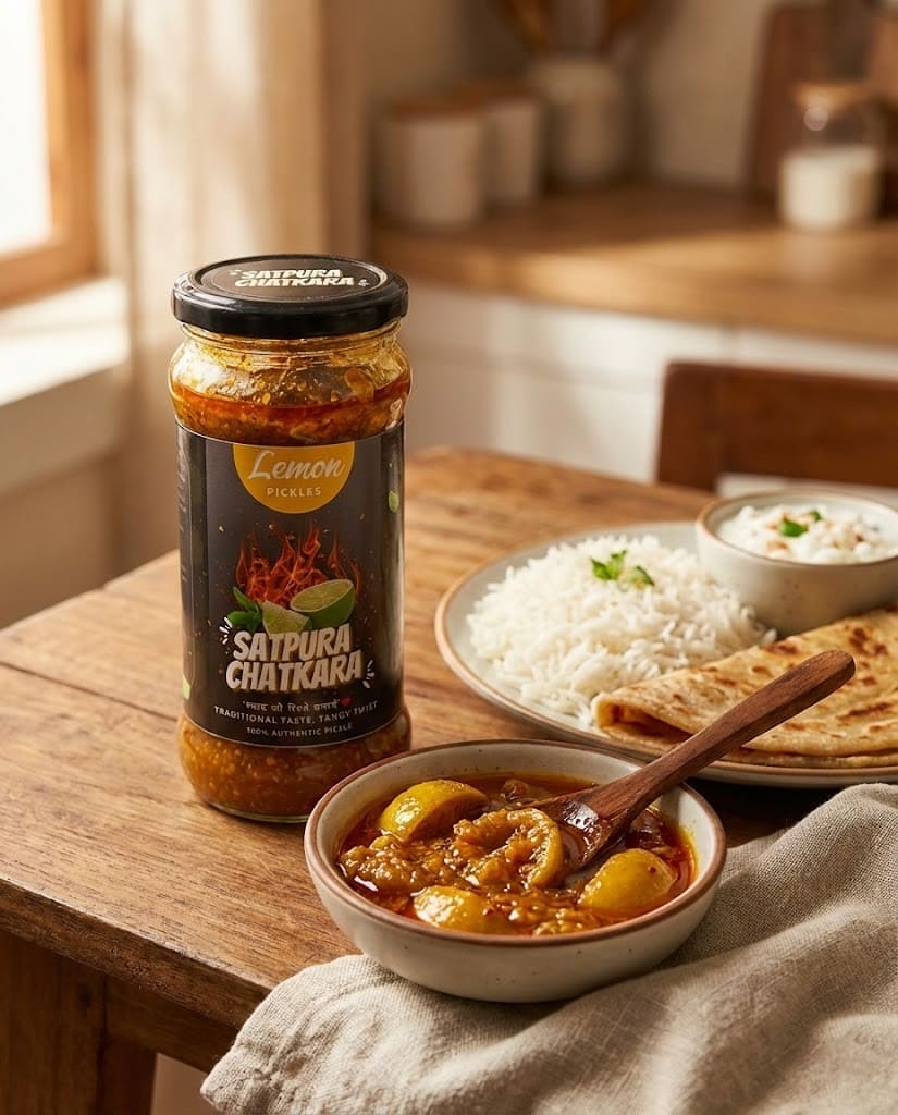 Crafted using naturally ripened lemons, Satpura Chatkara Organic Lemon Pickle is tangy, aromatic, and slow-matured in Pachmarhi, Satpura forest. Made without vinegar and perfected through a recipe followed since 2000.
